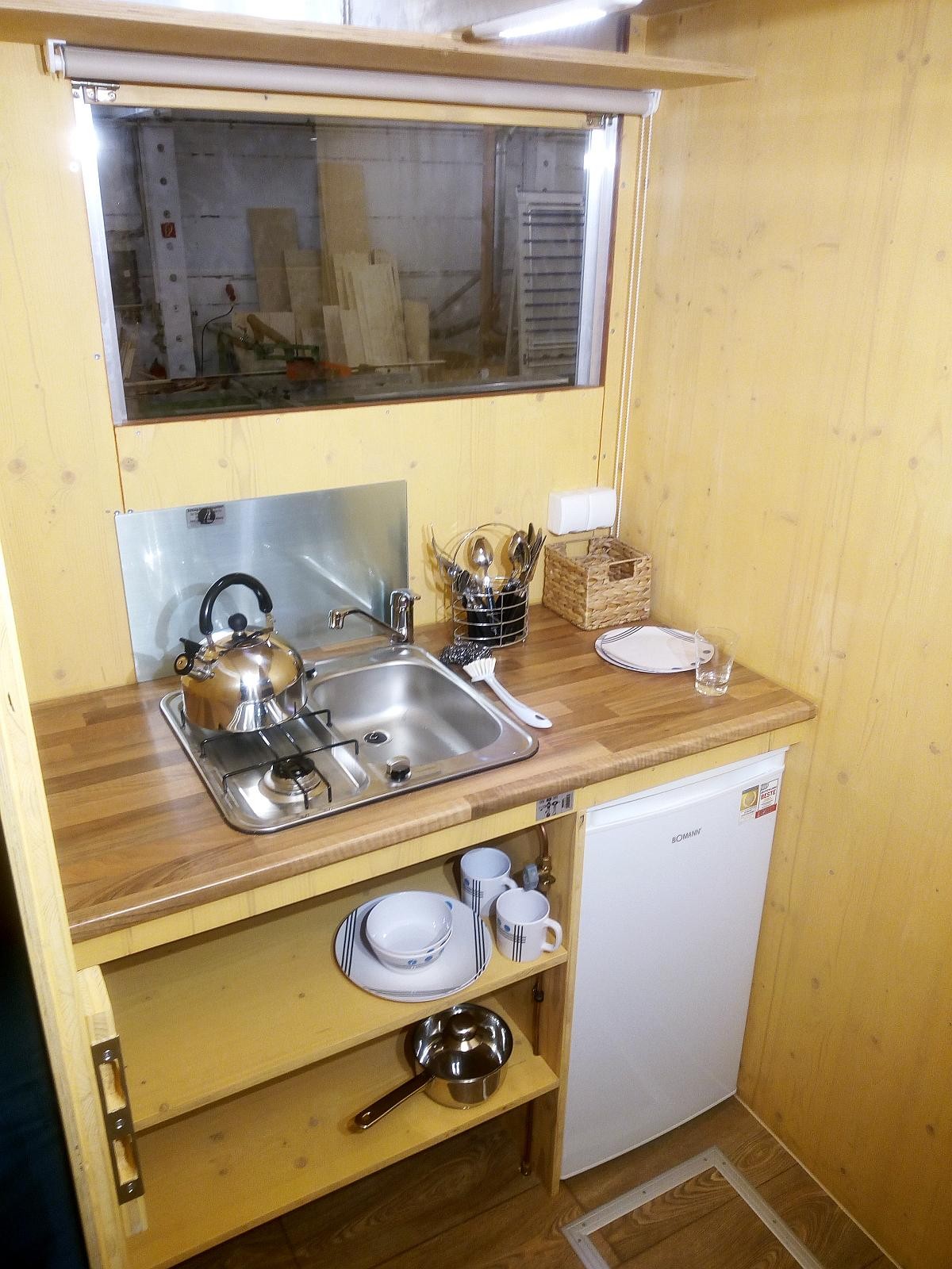 - Arbeitsplatte, Ablagefläche und Regal im Heckbereich